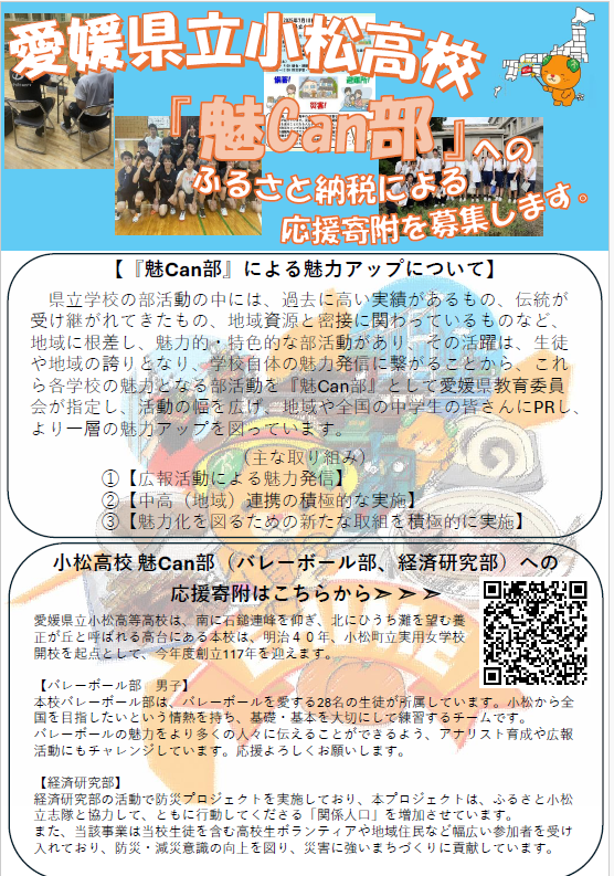 小松高校では、「バレーボール部」と「経済研究部」が「魅Can部」として活動し、小松高校の魅力を発信しています。